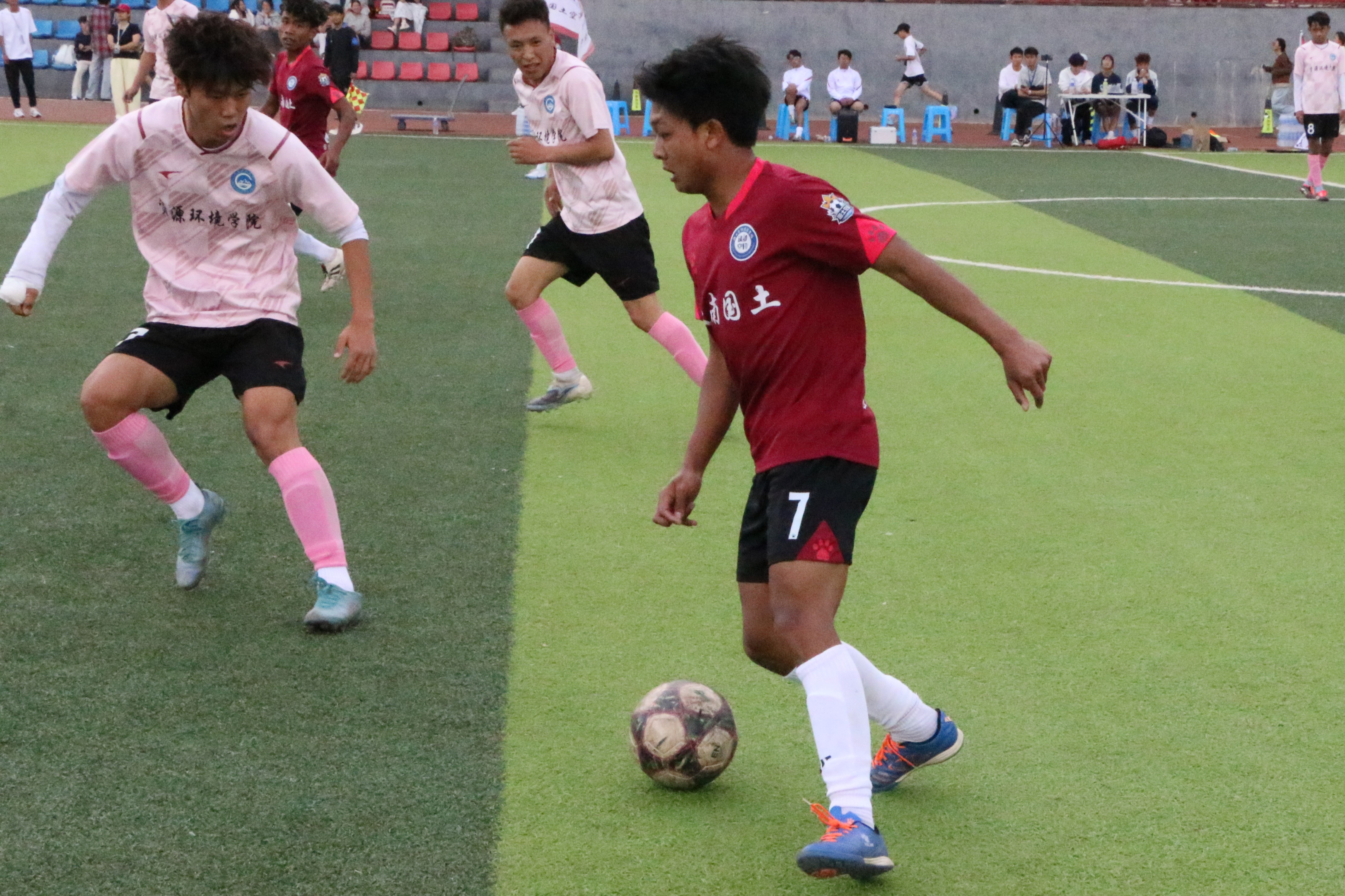 4月14日,国土空间信息学院第七届“国土杯”足球赛第五场比赛激情开赛。随着裁判一声哨…