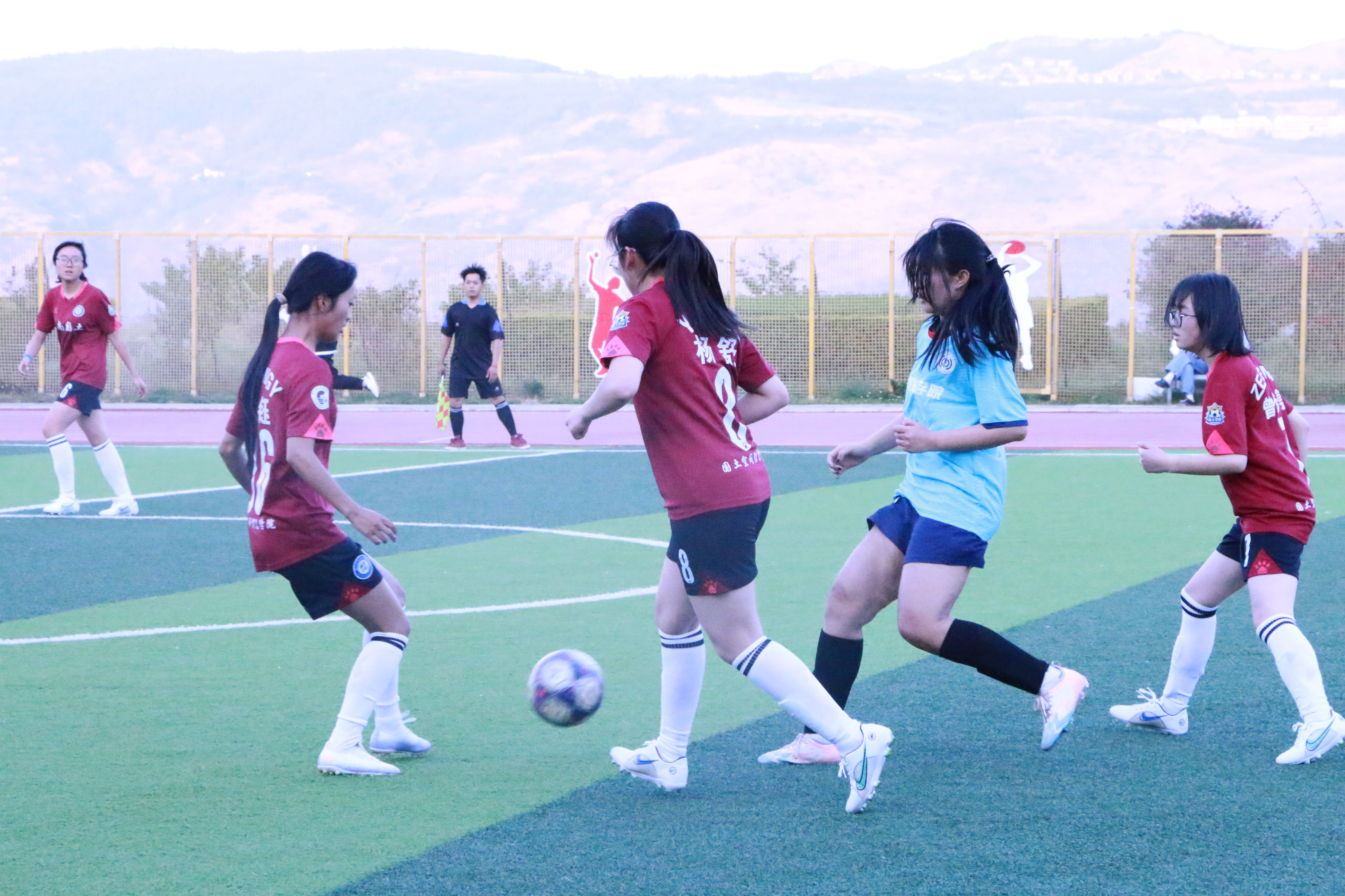 女子组比赛同样紧张激烈,亮点频现。我院女足姑娘们不畏强手、敢打敢拼,在绿茵场上全力奔跑、奋勇争先,最终以1:8的比分遗憾落败,但始终斗志昂扬,用坚韧与坚持奋战至最后一刻。