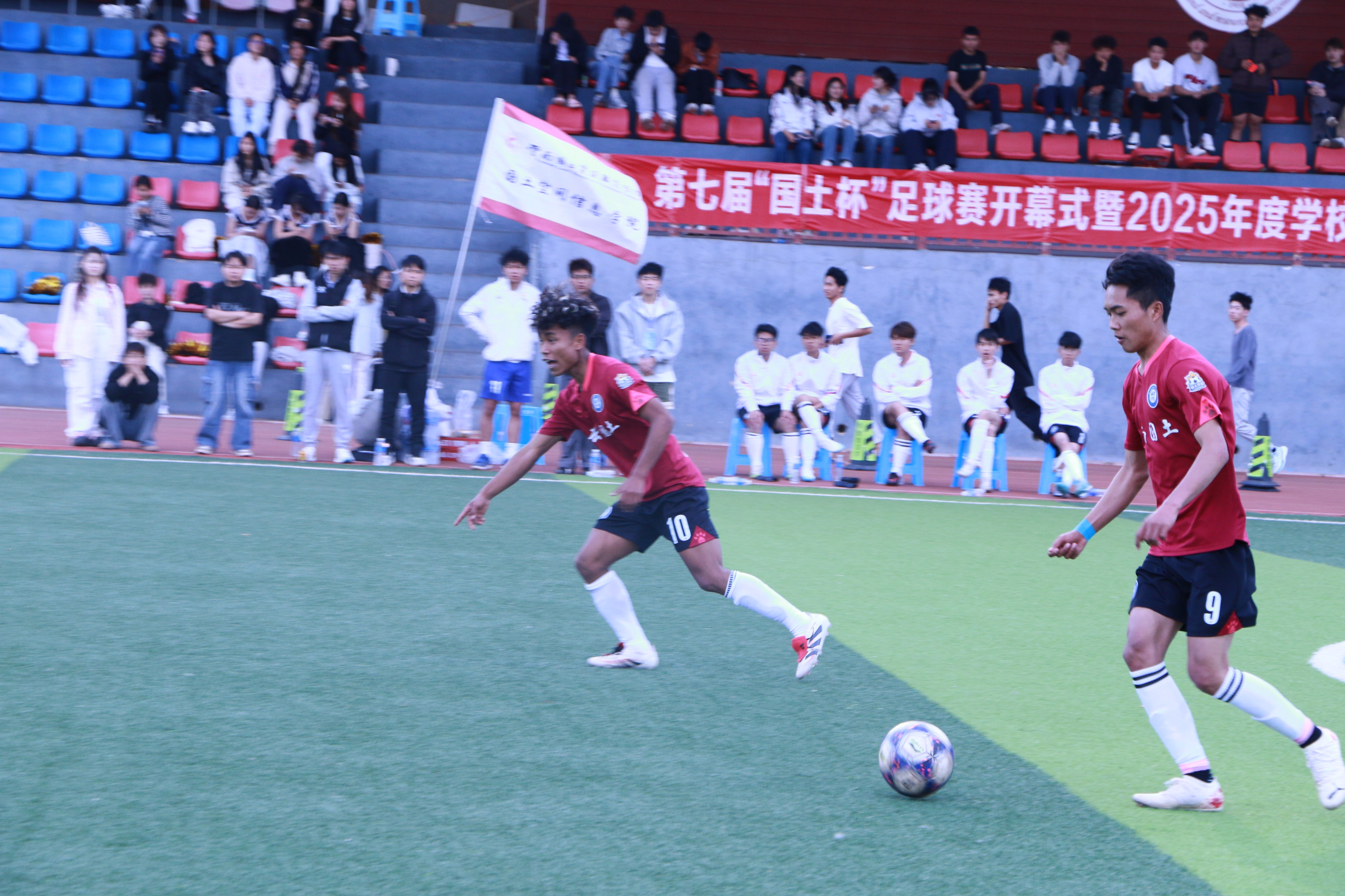 3月30日,国土空间信息学院第七届“国土杯”足球赛第二场比赛激情开赛。随着裁判一声哨响,国土空间信息学院与商务信息学院的男女足对决正式拉开战幕。双方队员精神饱满、斗志昂扬,迅速进入比赛状态,现场气氛热烈高涨。