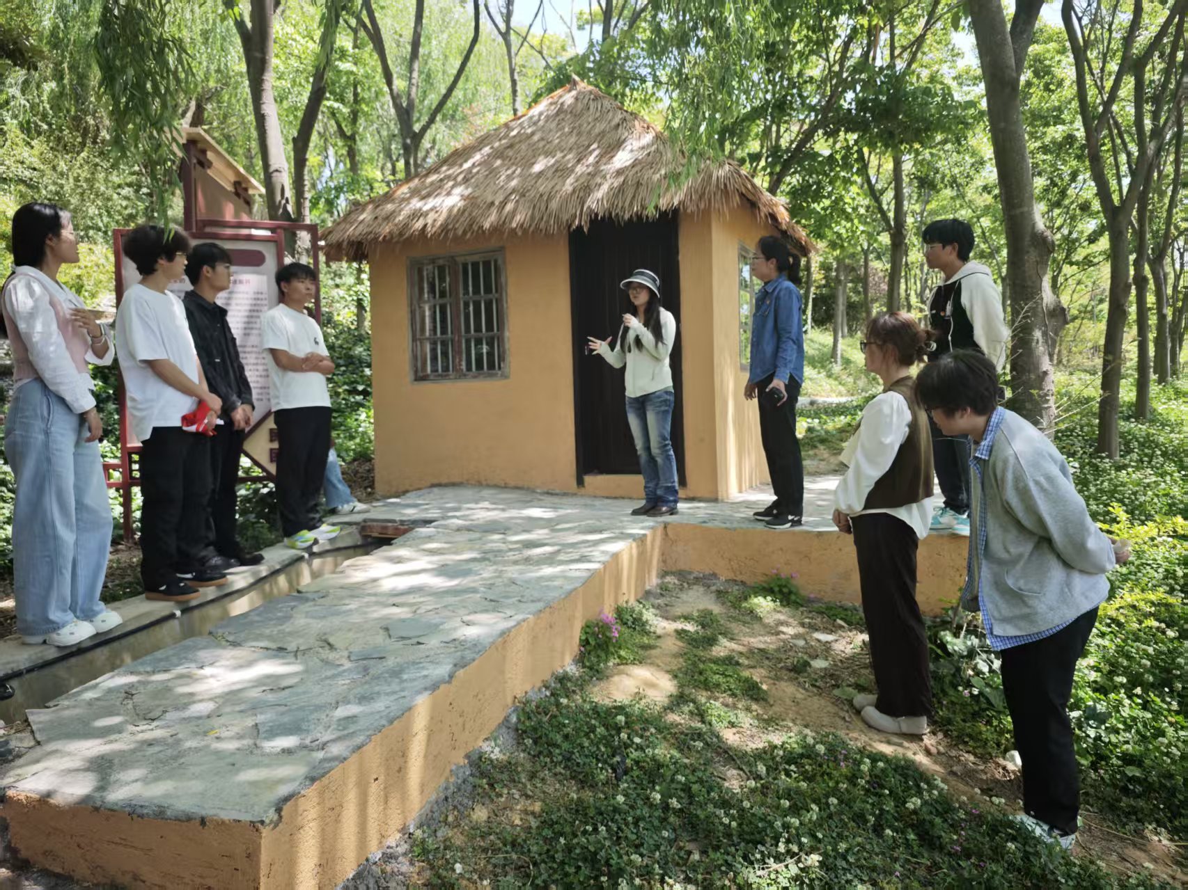 乔老师为青马学员介绍了“木楞房”。从“有居处”到“能安居”,谷川百姓的“幸福梦”正一步步照进现实。木楞房是云南省怒江傈僳族自治州兰坪白族普米族自治县少数民族的传统民居,也是我校参与脱贫攻坚工作的重要历史见证。大家驻足聆听,深刻体会到脱贫攻坚带来的巨大变迁,更感受到高校服务地方发展的责任与担当。