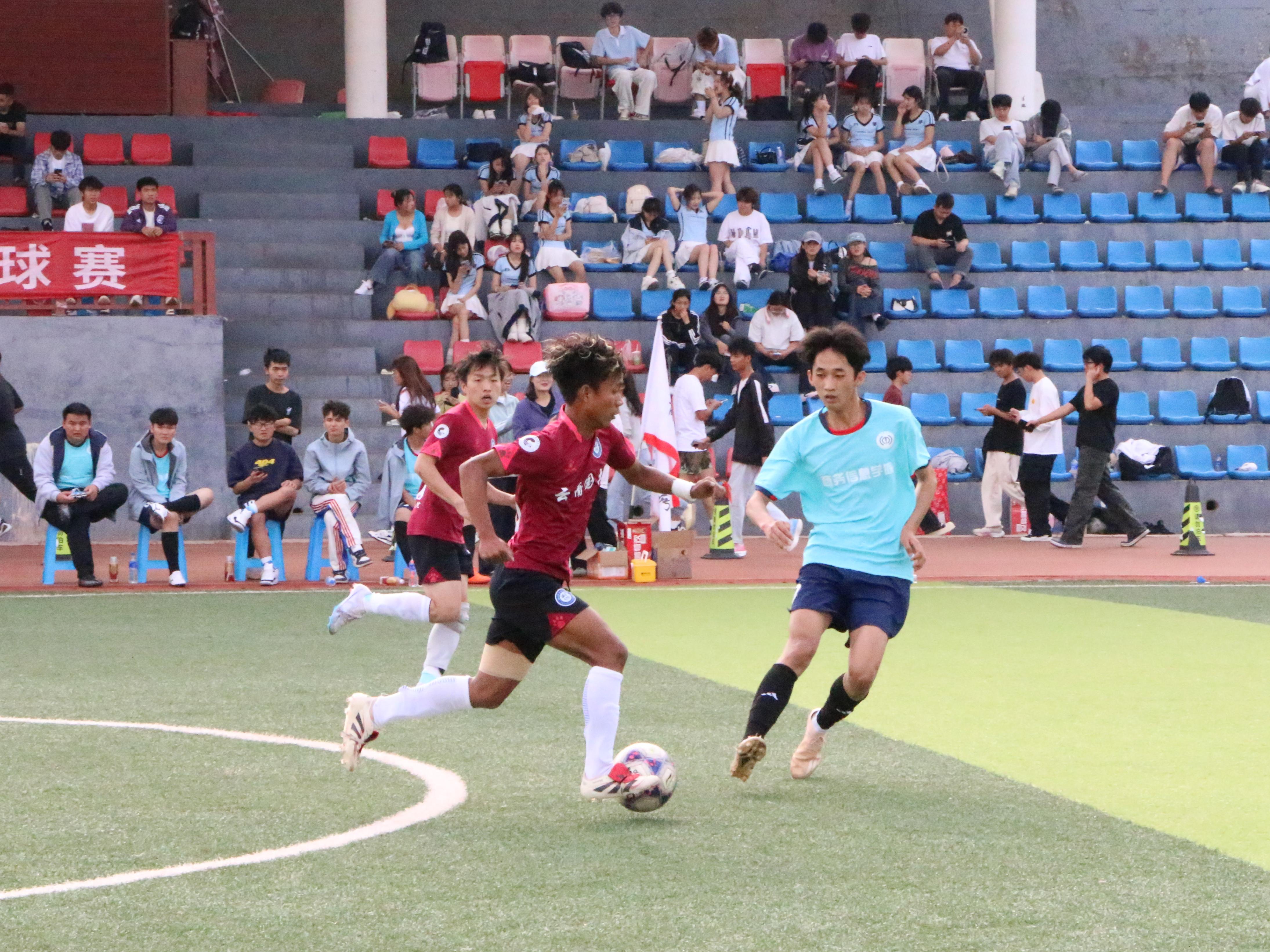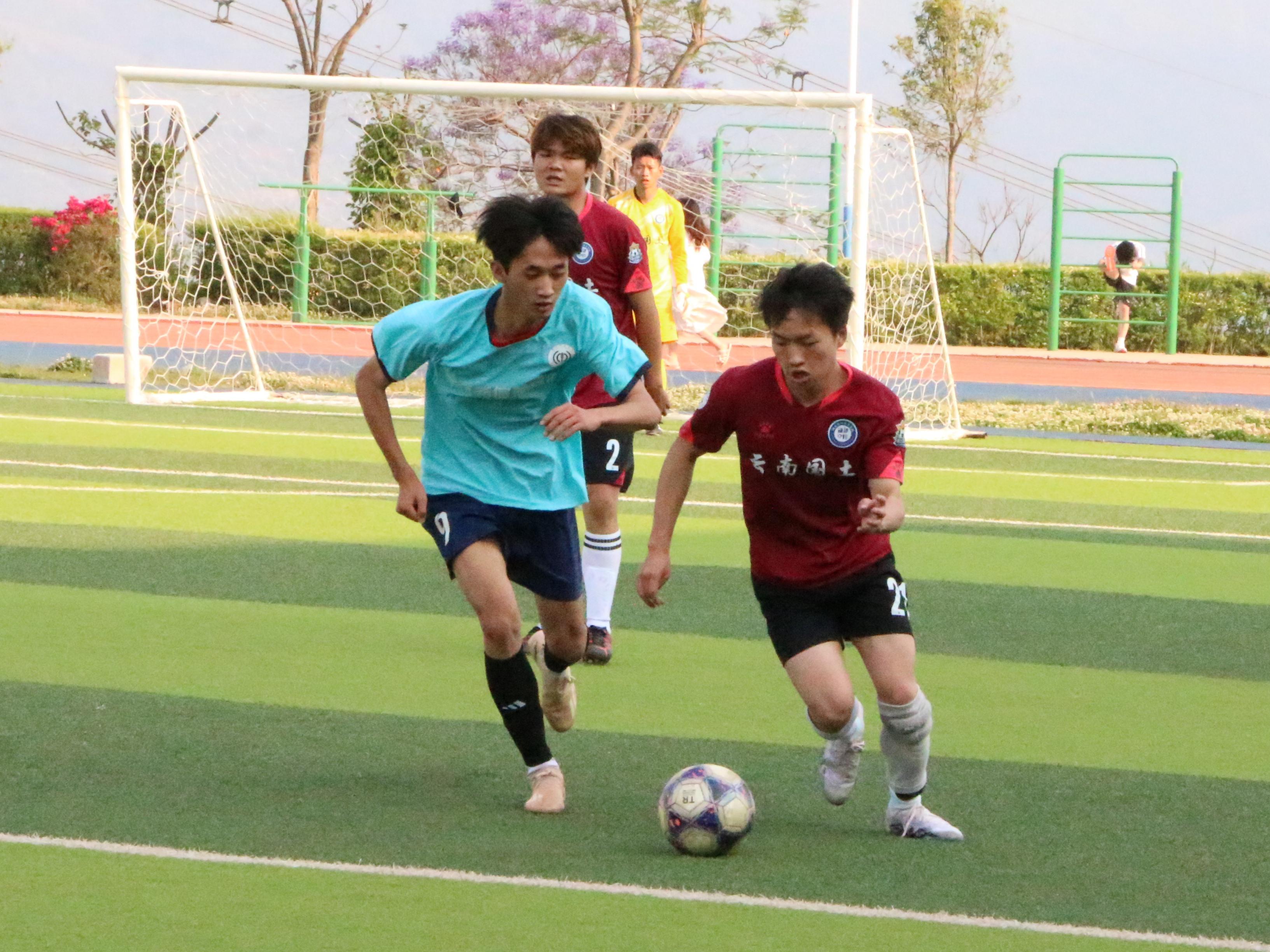 4月21日,云南国土资源职业学院第七届“国土杯”足球赛上,国土空间信息学院男足迎来一场焦点对决,与商务信息学院男足展开第二回合较量。双方全力以赴,为荣誉而战。